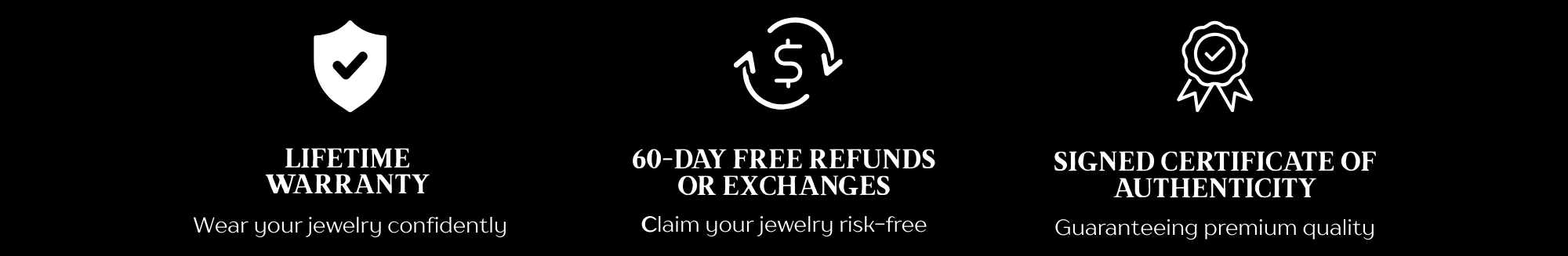 We take pride in offering high-quality jewelry made from premium materials like 18K gold, 925 sterling silver, and ethically sourced gemstones. These materials are from certified suppliers, and your order will also come with a signed certificate of authenticity. Plus, we offer a 60-day risk-free return policy so you can shop with confidence