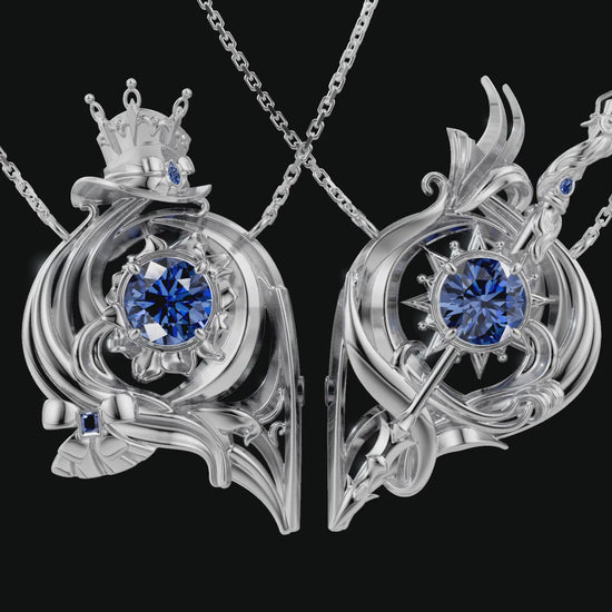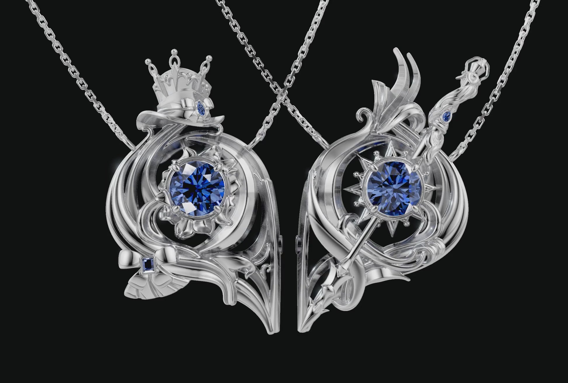 ✓ Beautiful blue stones that sparkle like clear water. Each necklace features a bright sapphire blue zircon and tiny details like Furina’s crown and Neuvillette’s elegant patterns.