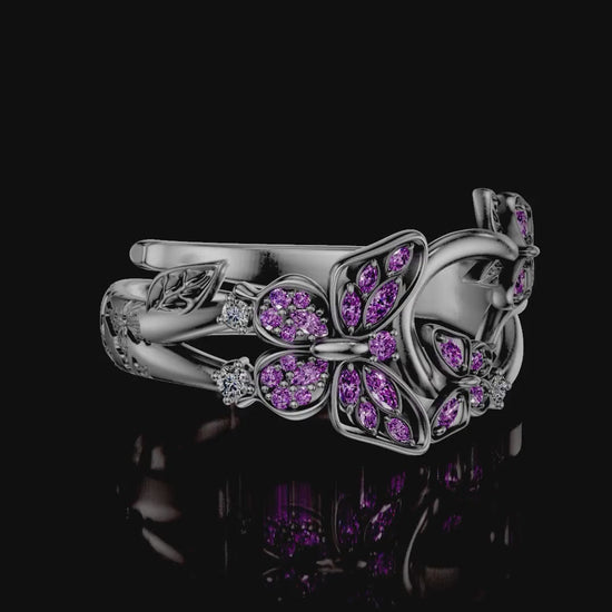 ✓ Sparkling brilliant-cut amethyst zircons form a butterfly aesthetic with brilliant white zirconias, reflecting the shimmering scales of a butterfly’s wings